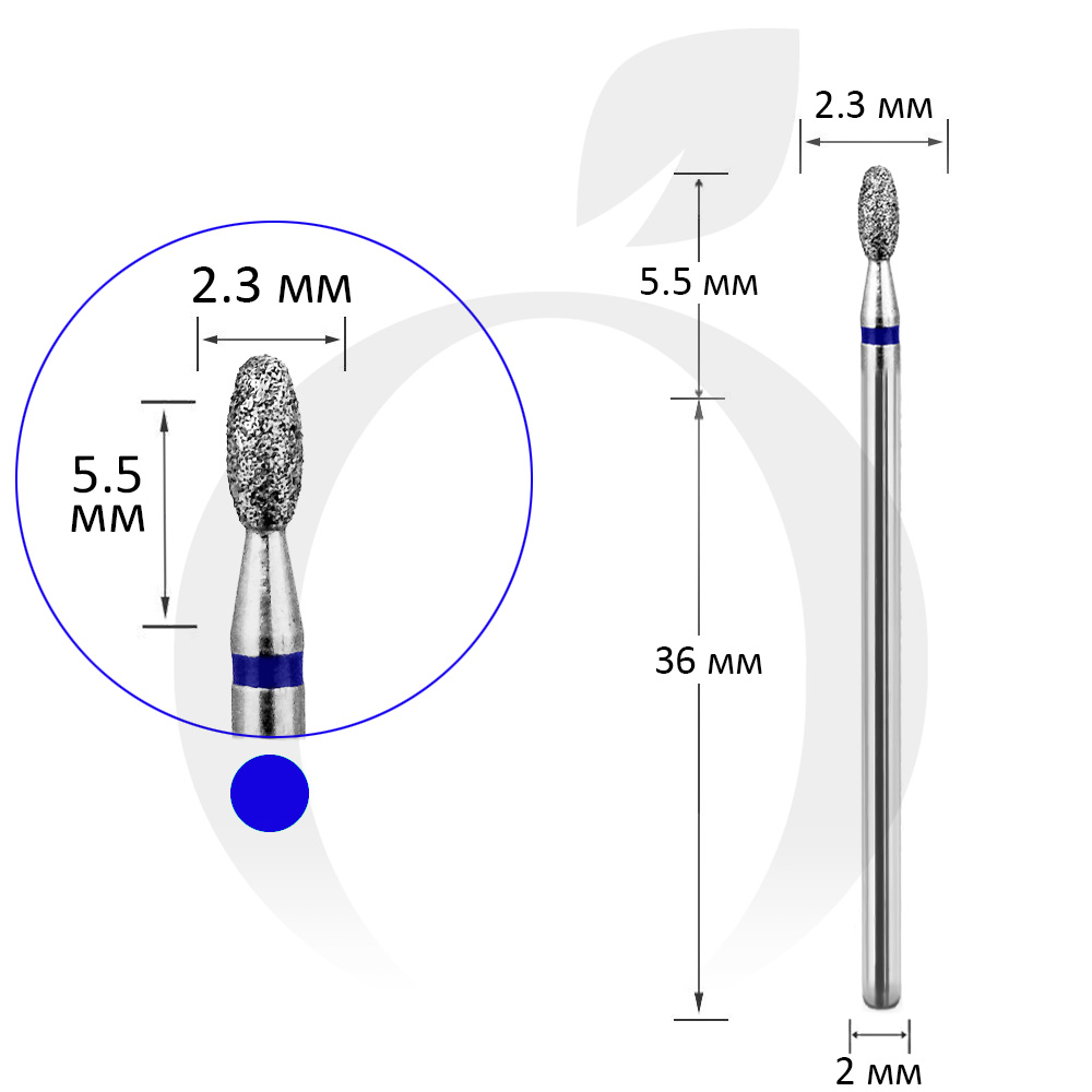 Фреза алмазна бутон синя 2.3 мм, робоча частина 5.5 мм (A13)