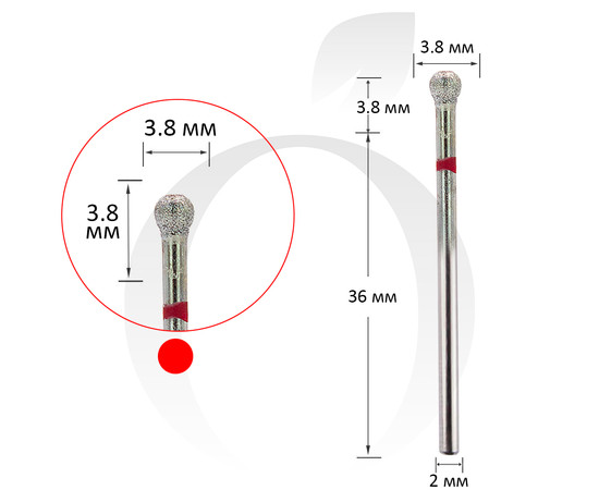 Фреза алмазна куля червона 3.8 мм