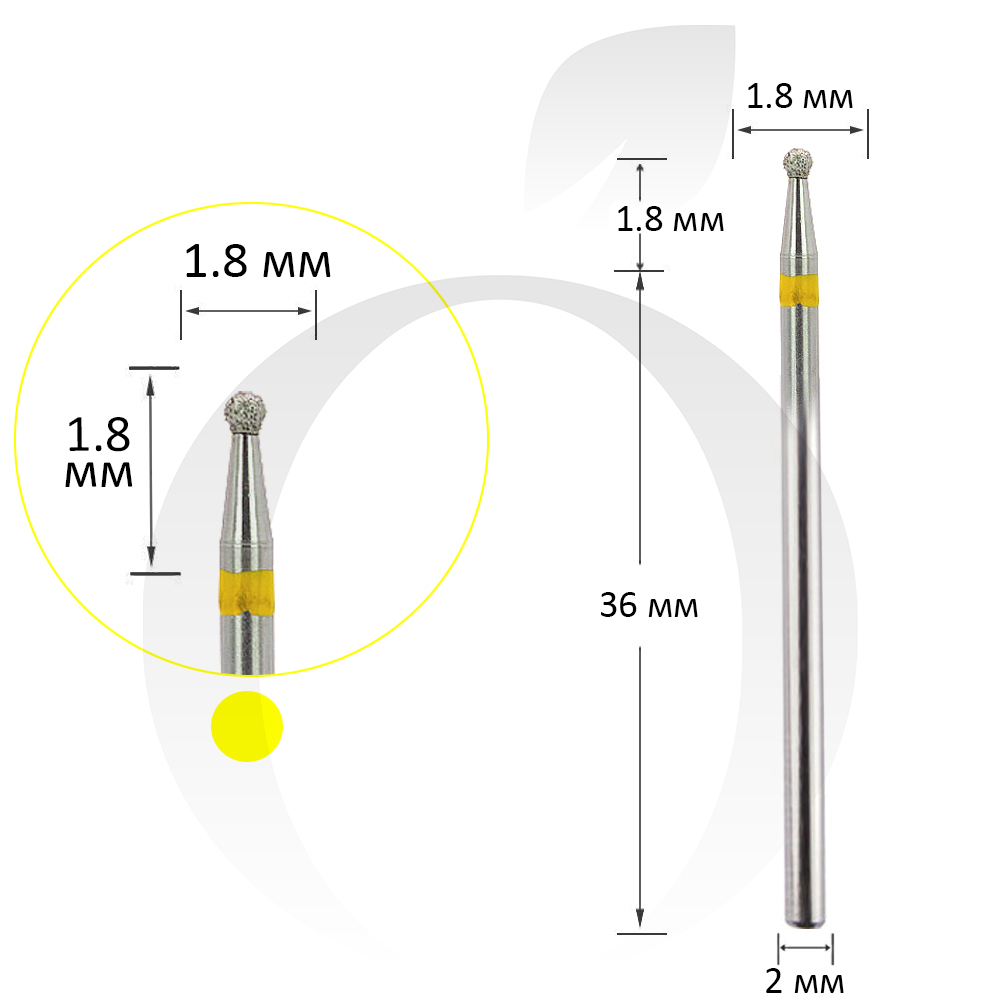 Фреза алмазна куля жовта 1.8 мм