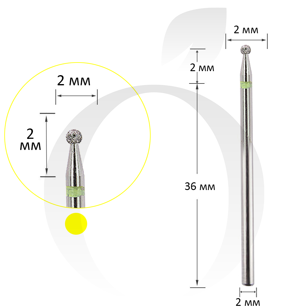 Фреза алмазна куля жовта 2 мм