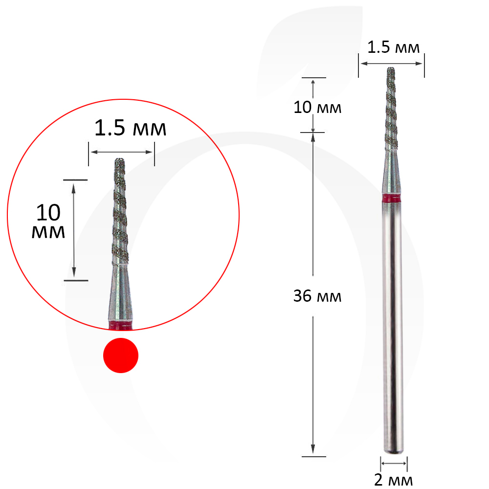 Фреза алмазна торнадо конус червона 1.5 мм, робоча частина 10 мм