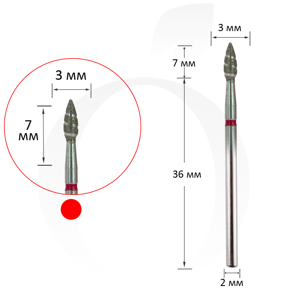 Фреза алмазна торнадо червона 3 мм, робоча частина 7 мм