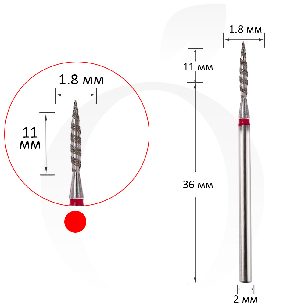 Фреза алмазна торнадо полум'я червона 1.8 мм, робоча частина 11 мм