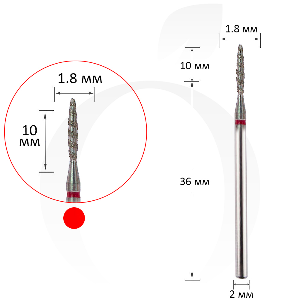 Фреза алмазна торнадо куля червона 1.8 мм, робоча частина 10 мм