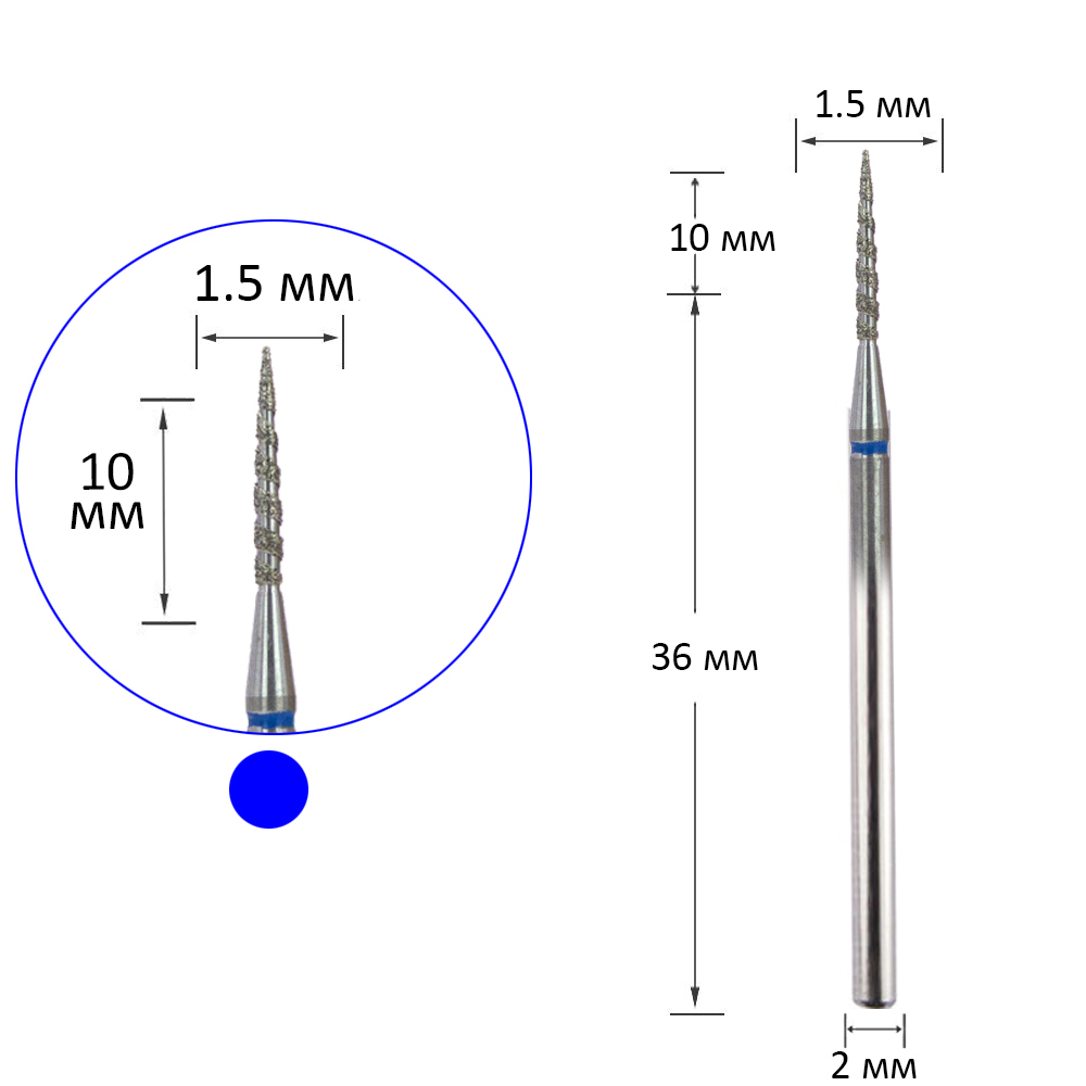 Фреза алмазна торнадо синя 1.5 мм, робоча частина 10 мм