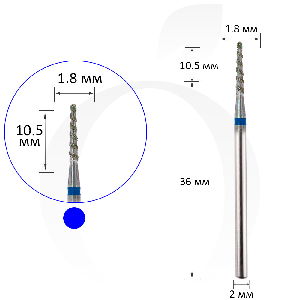 Фреза алмазна торнадо конус синя 1.8 мм, робоча частина 10.5 мм