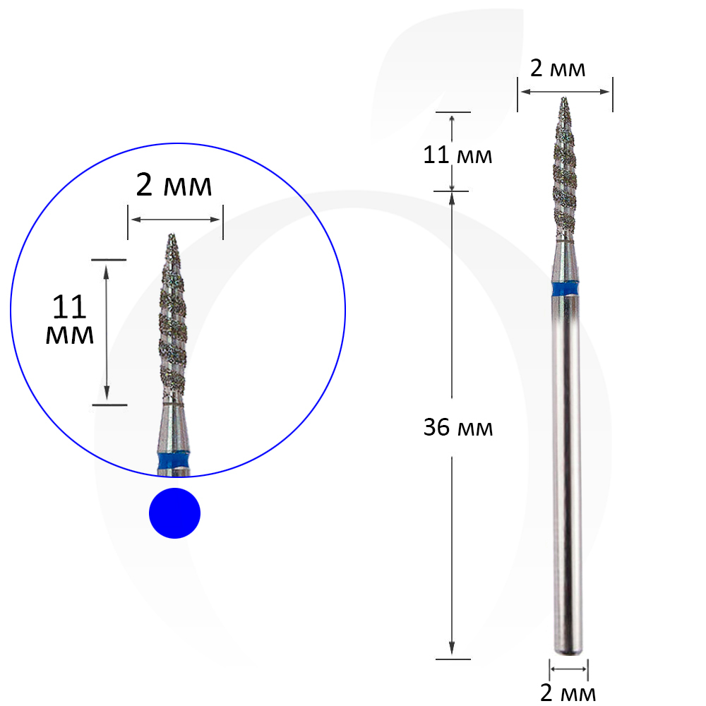 Фреза алмазна торнадо полум'я синя 2 мм, робоча частина 11 мм