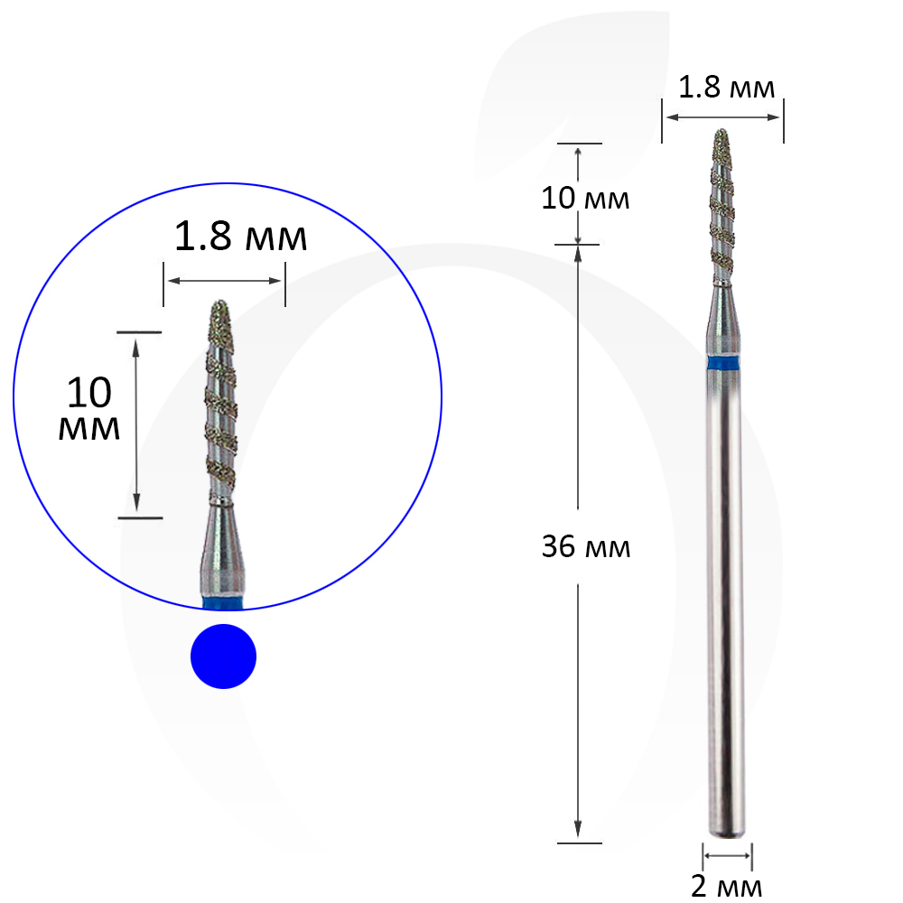 Фреза алмазна торнадо куля синя 1.8 мм, робоча частина 10 мм