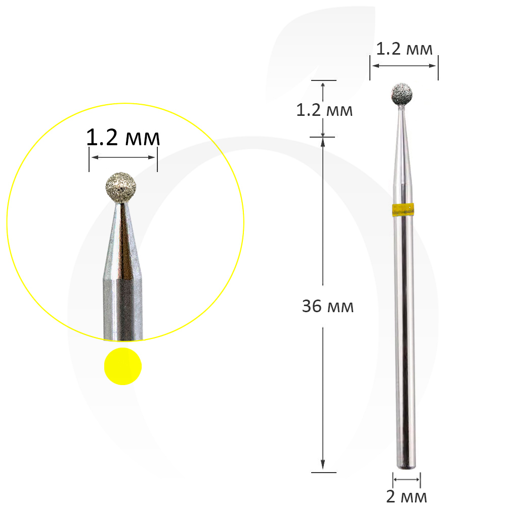 Фреза алмазна шар жовта, діаметр 1.2 мм