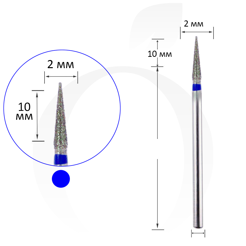 Фреза алмазна конус синя 2 мм, робоча частина 10 мм