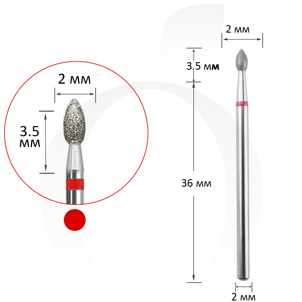 Фреза алмазна бутон червона 2 мм, робоча частина 3.5 мм
