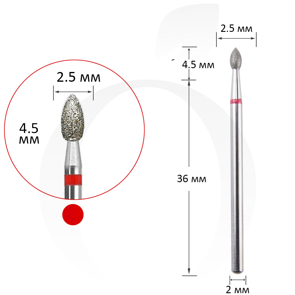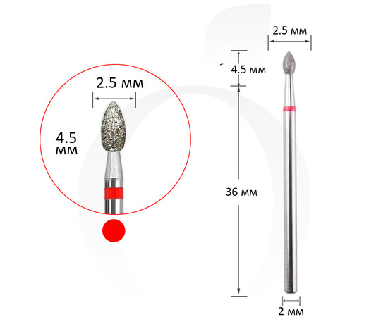 Фреза алмазна бутон червона 2.5 мм, робоча частина 4.5 мм