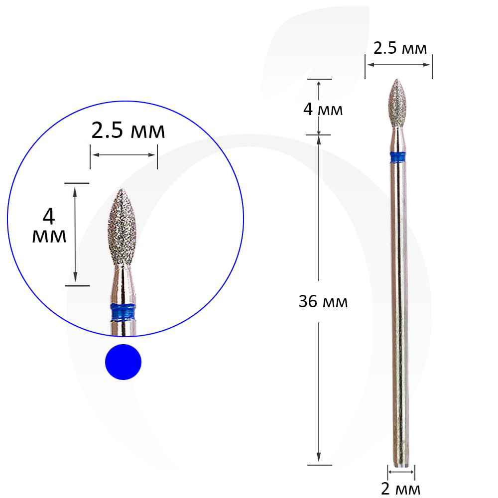 Фреза алмазна бутон синя 2.5 мм, робоча частина 4 мм