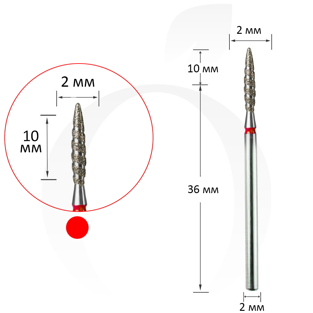 Фреза алмазна торнадо червона 2 мм, робоча частина 10 мм