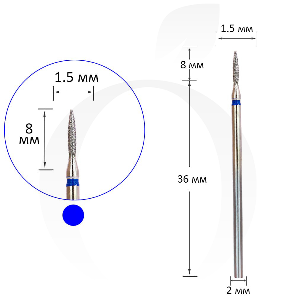 Фреза алмазна полум'я синя 1.5 мм, робоча частина 8 мм