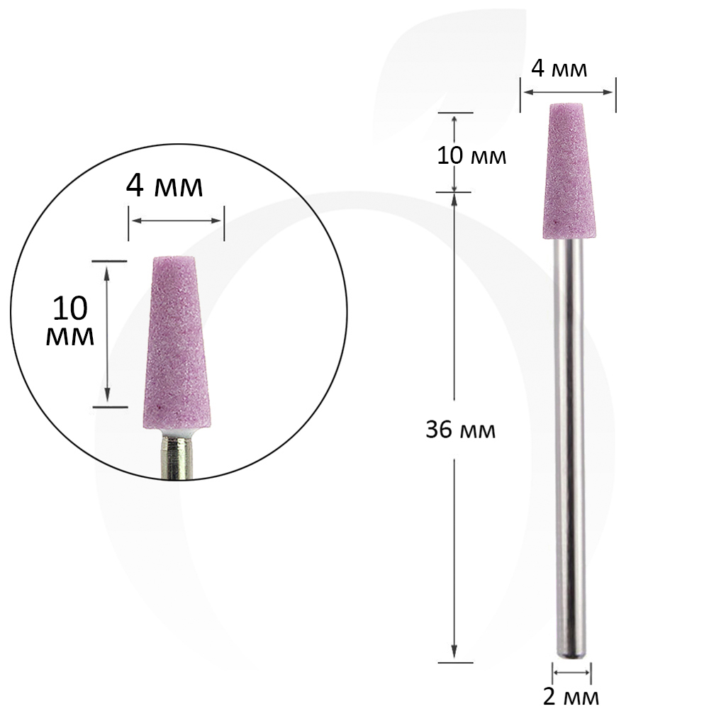 Фреза для манікюру корундова рожева конус 4 мм, робоча частина 10 мм