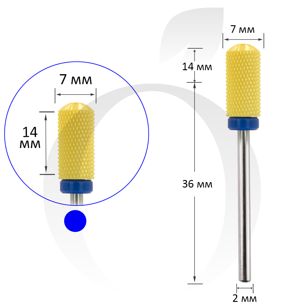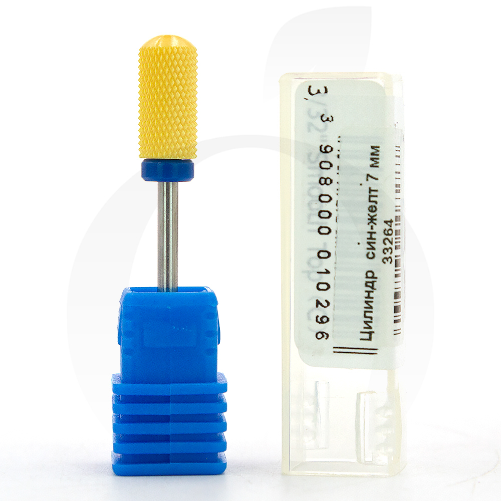 Фреза керамічна циліндр синя+жовта 7 мм, робоча частина 14 мм