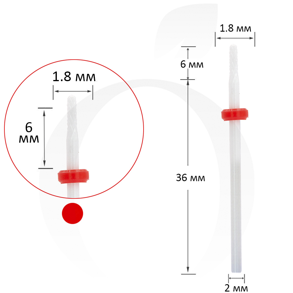 Фреза керамічна голка червона 1.8 мм, робоча частина 6 мм