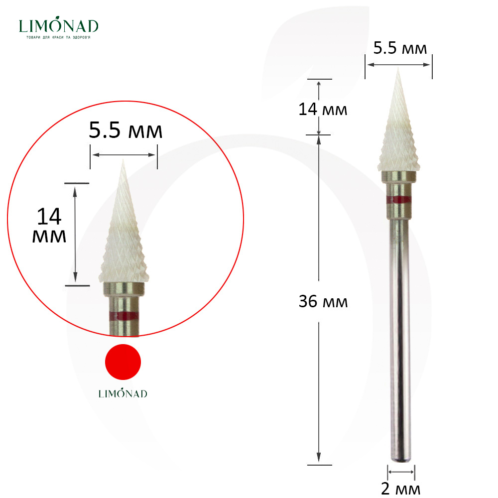 Фреза керамічна гострий конус червона 5.5 мм, робоча частина 13 мм