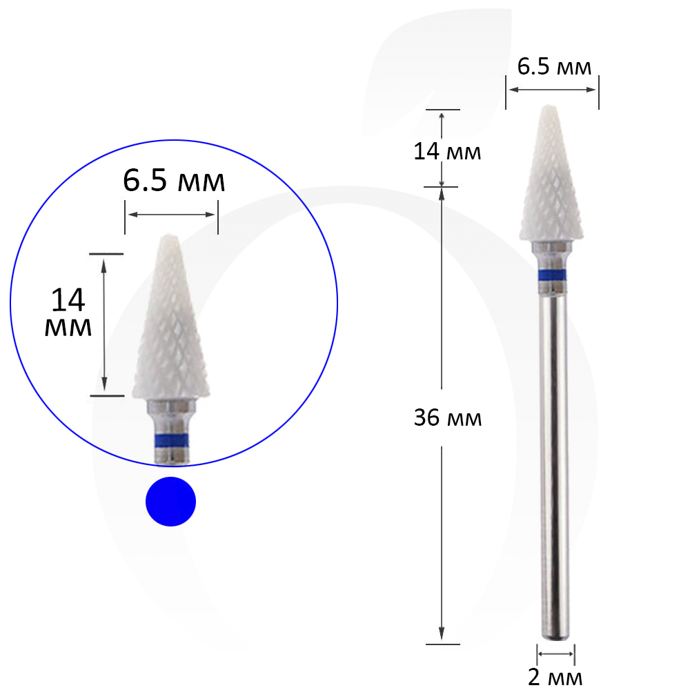 Фреза керамічна конус синя 6.5 мм, робоча частина 14 мм