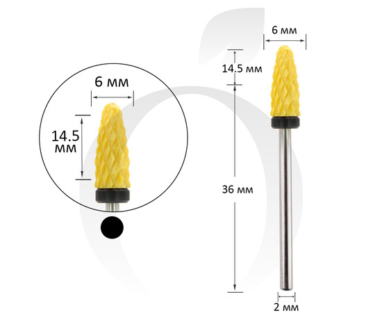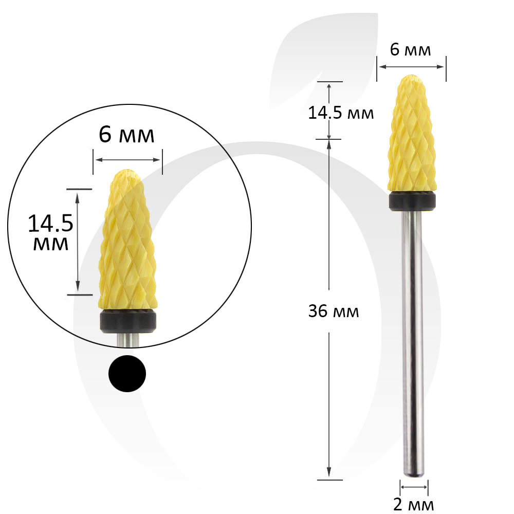Фреза керамічна кукурудза чорна+жовта 6 мм, робоча частина 14.5 мм