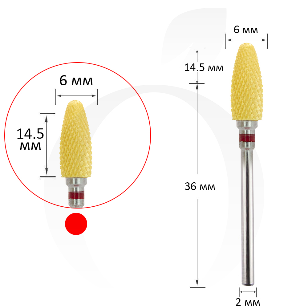 Фреза керамічна кукурудза червона+жовта 6 мм, робоча частина 14.5 мм