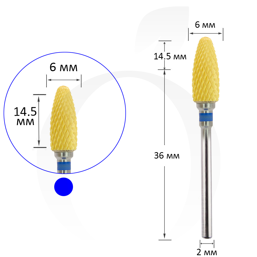 Фреза керамічна кукурудза синя+жовта 6 мм, робоча частина 14.5 мм