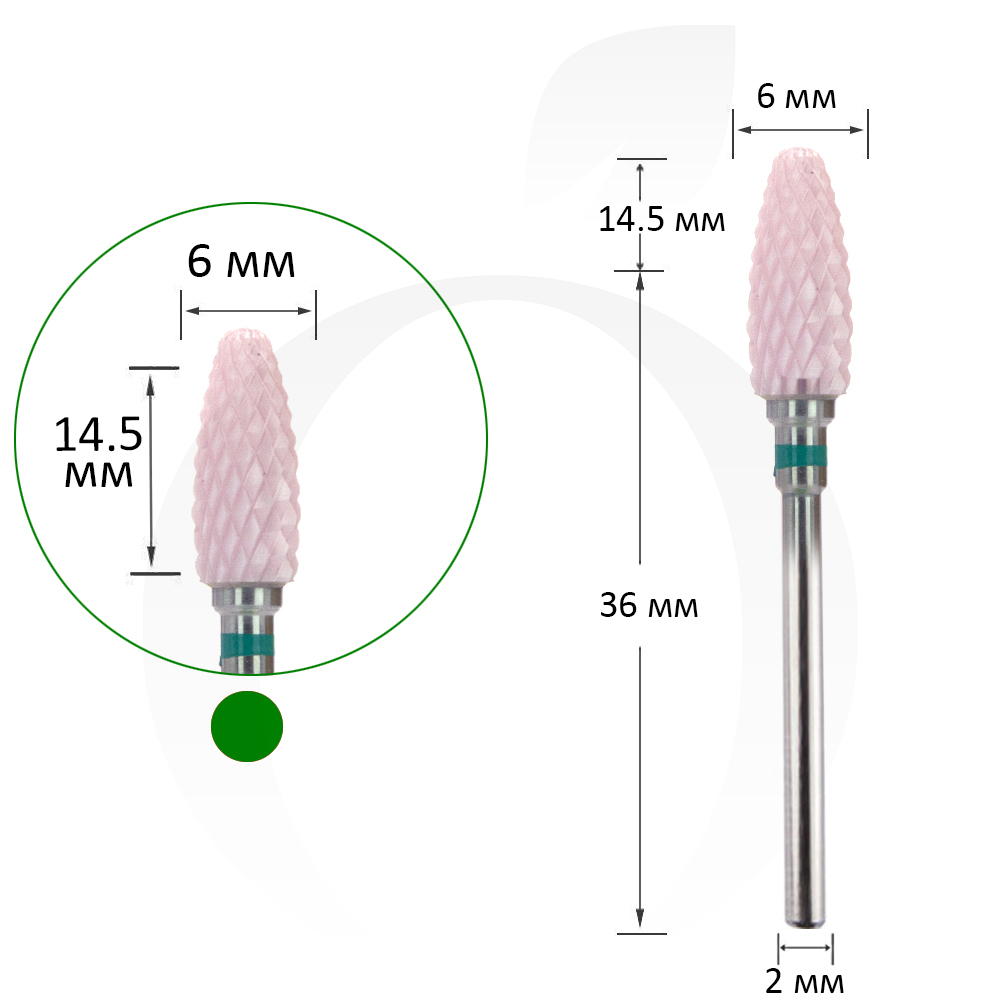 Фреза керамічна кукурудза зелена+рожева 6 мм, робоча частина 14.5 мм