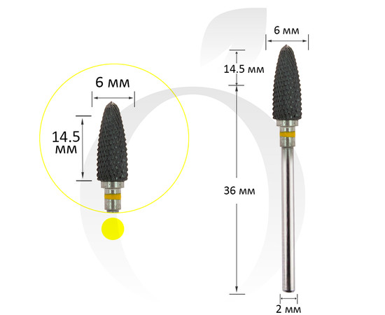 Фреза кукурудза керамічна жовта+чорна 6 мм, робоча частина 14.5 мм