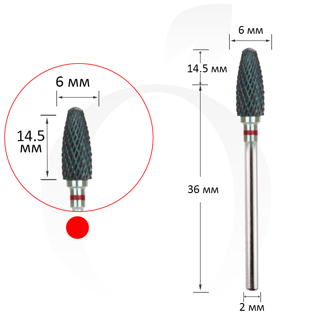 Фреза керамічна кукурудза червона 6 мм, робоча частина 14.5 мм