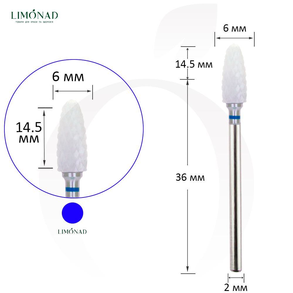 Фреза керамічна кукурудза синя 6 мм, робоча частина 14.5 мм