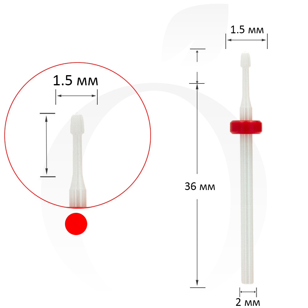 - Дрібний абразив. Насадка червоного кольору. Призначена для зняття гель-лаку, корекції нарощених нігтів. Обтічна форма дозволяє легко проходити ділянки біля кутикули та вздовж бічних валиків.