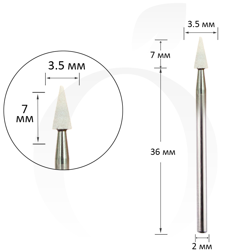 Фреза для манікюру корундова конус біла 3.5 мм, робоча частина 7 мм