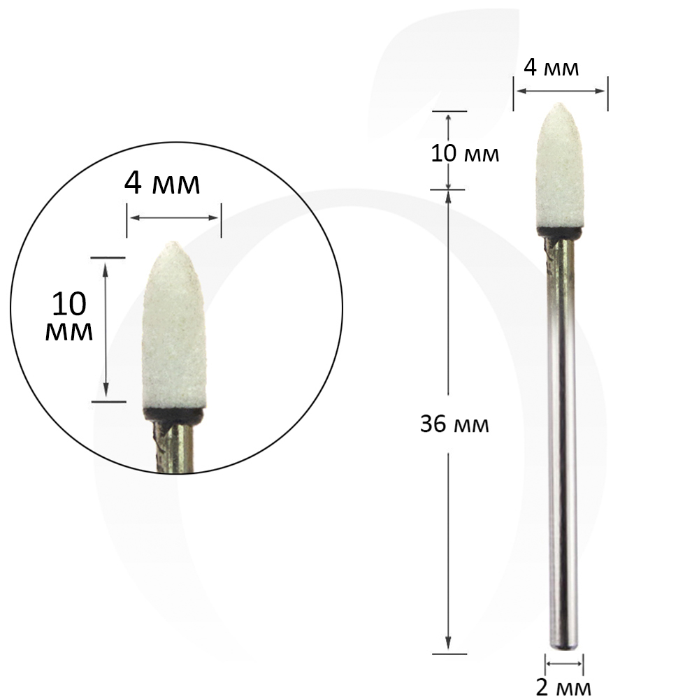 Фреза для манікюру корундова куля біла 4 мм, робоча частина 10 мм