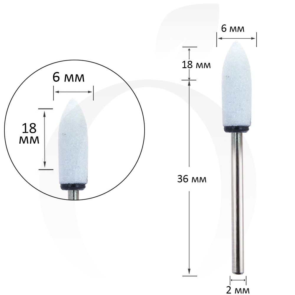 Фреза для манікюру корундова куля біла 6 мм, робоча частина 18 мм
