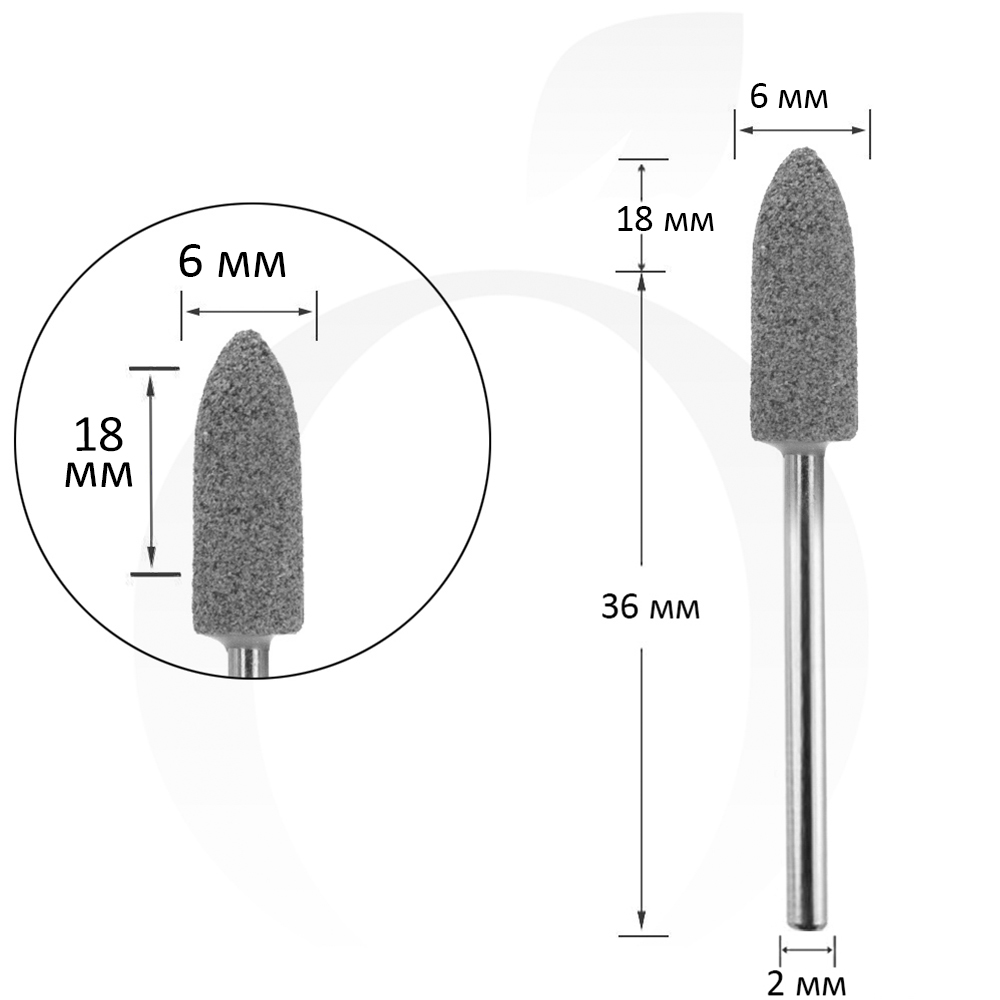 Фреза для манікюру корундова куля сіра 6 мм, робоча частина 18 мм