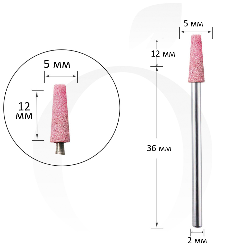 Фреза для манікюру корундова рожева конус 5 мм, робоча частина 12 мм