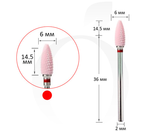 Фреза керамічна кукурудза червона 6 мм, робоча частина 14.5 мм