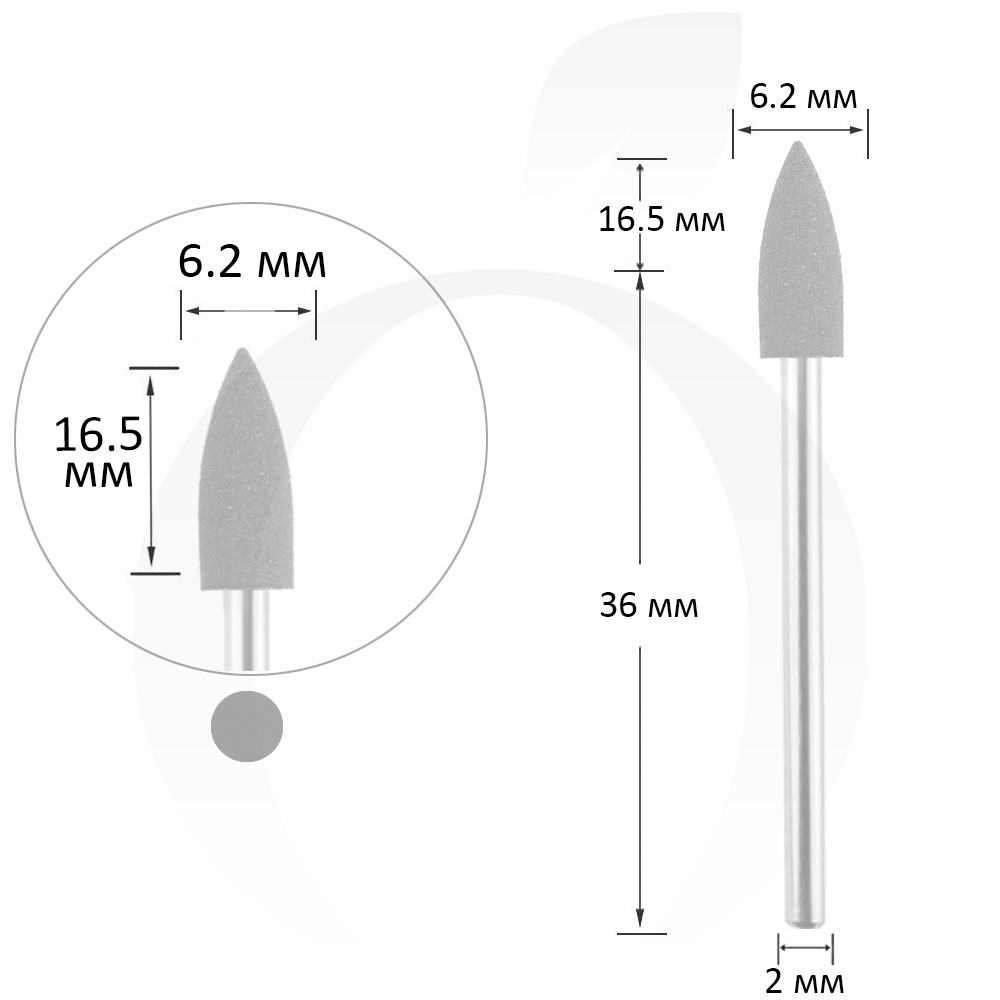 Силіконова фреза маленька 6.2 мм, робоча частина 16.5 мм, біла