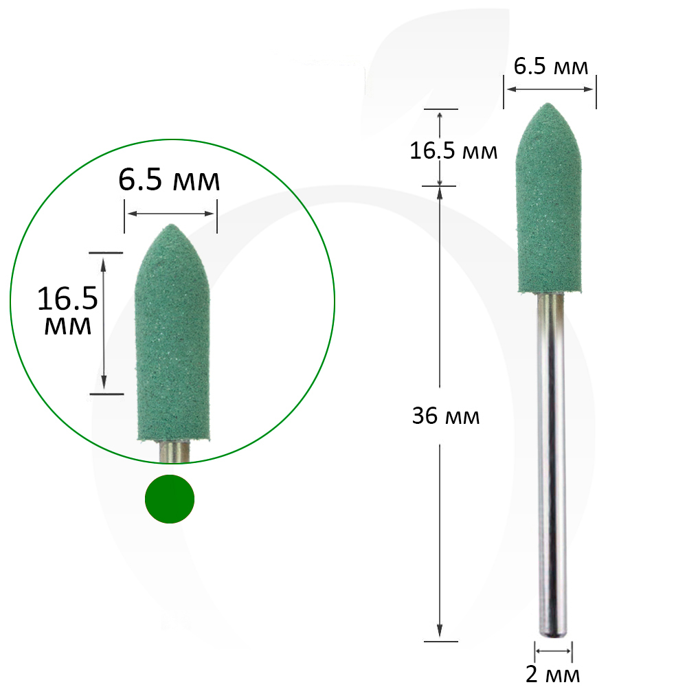 Фреза силіконова велика 6.2 мм, робоча частина 16.5 мм, зелена