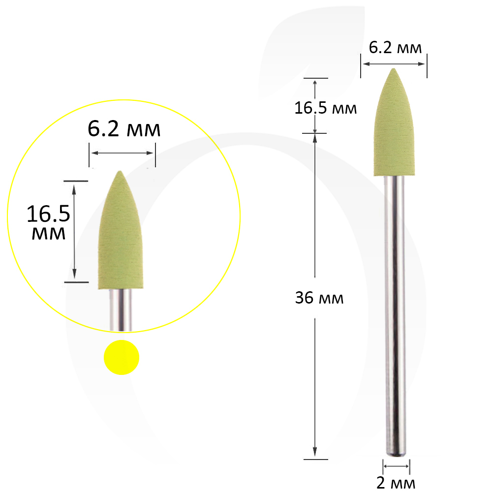 Силіконова фреза маленька 6.2 мм, робоча частина 16.5 мм, жовта