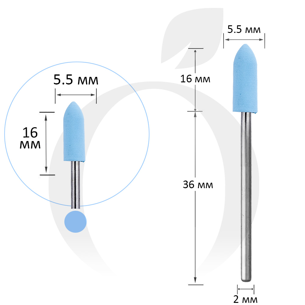 Фреза силіконова циліндр конус 5.5 мм, робоча частина 16 мм № 800, блакитна