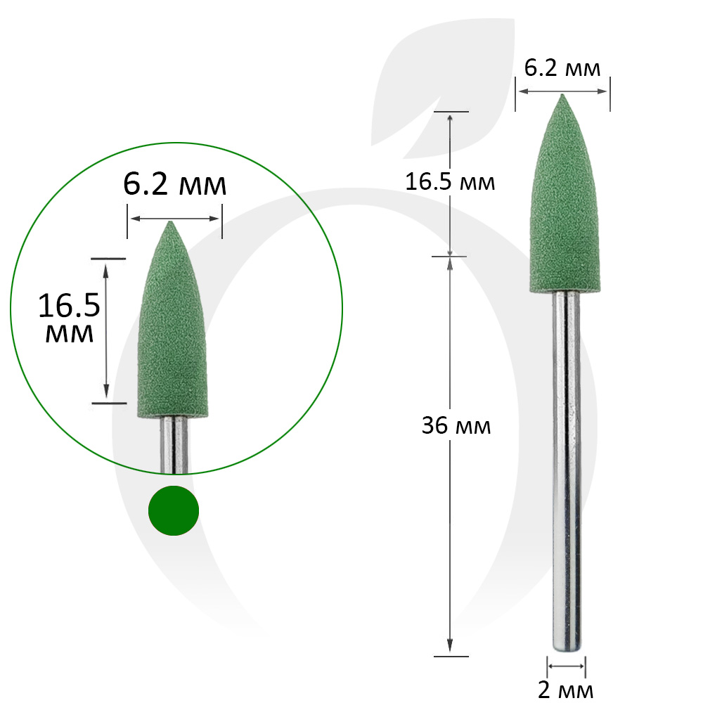 Фреза силикон конус 6.2/16.5 мм (240) зелена 63304