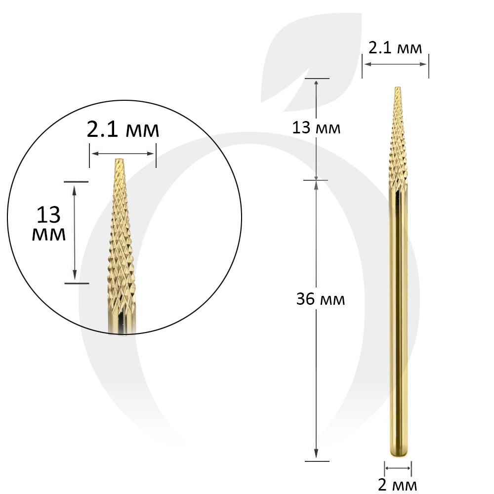 Фреза твердосплавна Titan Steel Component Bit 14 конус гострий золото 2.1/13 мм