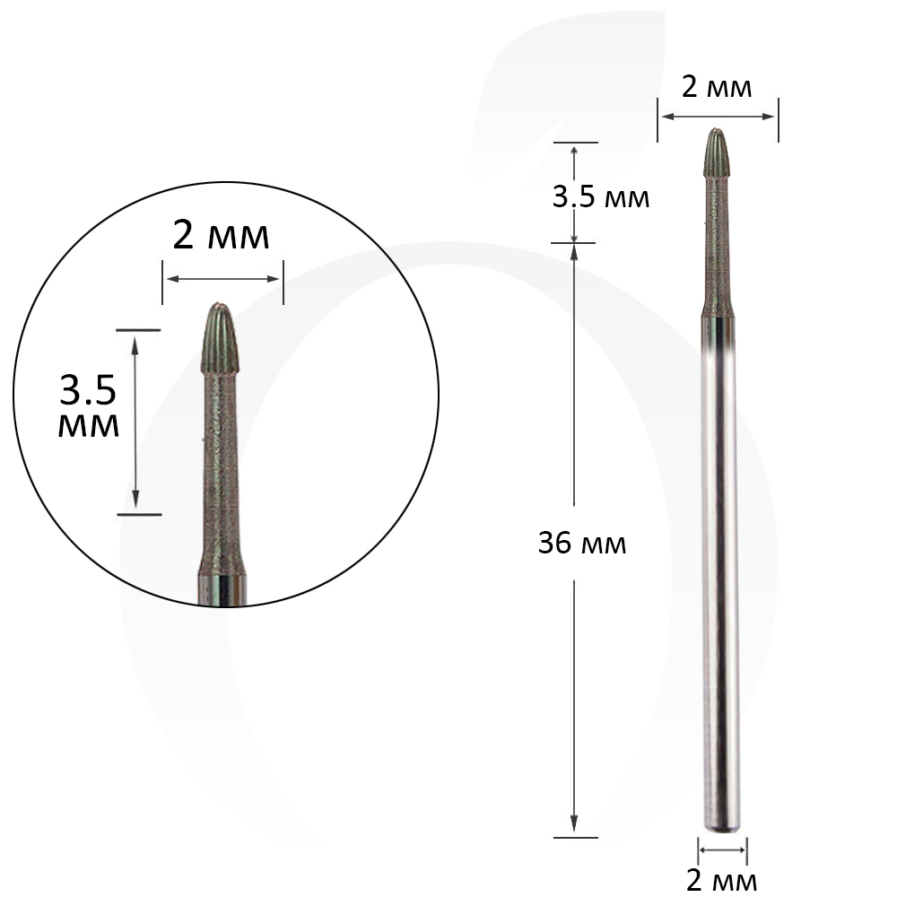 Фреза безпечна твердосплавна бутон 2 мм, робоча частина 3.5 мм