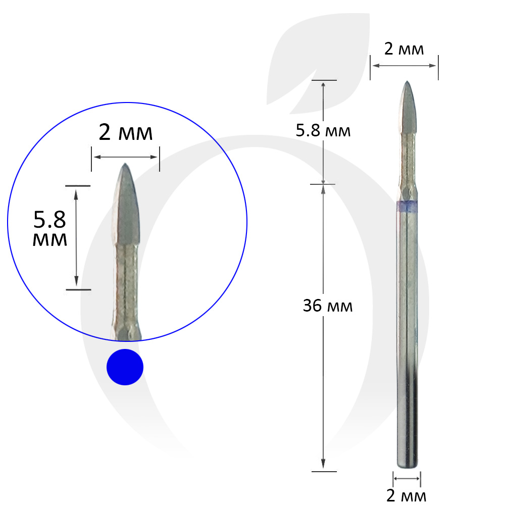 Фреза безпечна твердосплавна полум'я 2 мм, робоча частина 5.8 мм