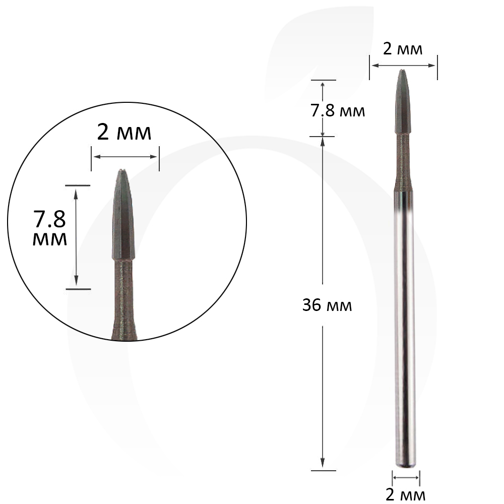 Фреза безпечна твердосплавна полум'я 2 мм, робоча частина 7.8 мм