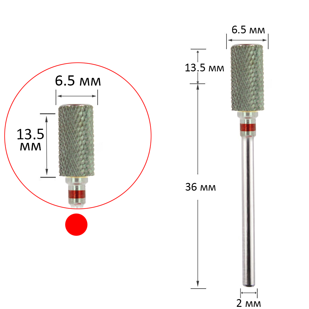 Фреза твердосплавна циліндр червона 6.5 мм, робоча частина 13.5 мм