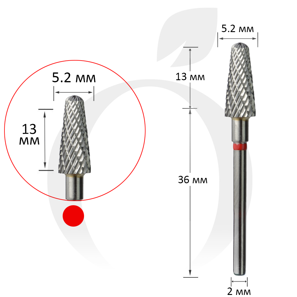 Фреза твердосплавна конус червона 5.2 мм, робоча частина 13 мм