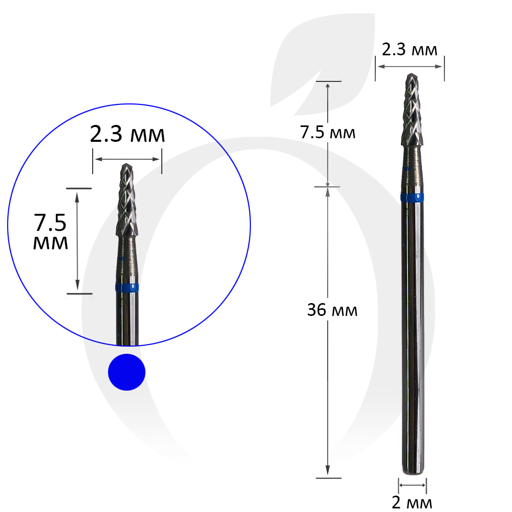 Фреза конус твердосплавна синя 2.3 мм, робоча частина 7.5 мм